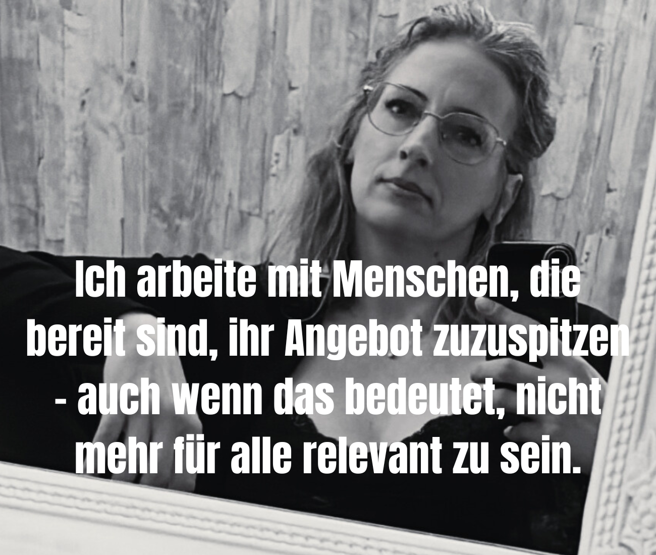 Mir ist wichtig, Dinge nicht zu beschönigen. Zustimmung, Likes oder gutes Feedback sind kein Beweis dafür, dass dein Business mehr Umsatz machen kann. Sie sind nur ein Zeichen dafür, dass etwas anschlussfähig ist. Wirksam wird ein Angebot erst dort, wo es Konsequenzen hat; für die Kundin genauso wie für dich. Genau an diesem Punkt arbeite ich.